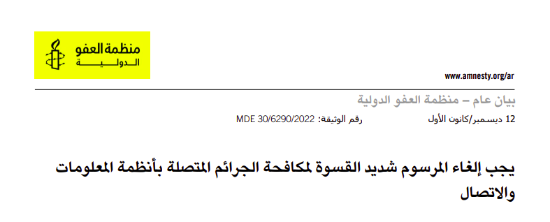 قالت منظمة العفو الدولية اليوم إنه ينبغي على تونس إلغاء مرسوم جديد يتعلق بمكافحة الجرائم المتعلقة بأنظمة المعلومات والاتصال أصدره الرئيس قيس سعيد ويهدد بشدة الحقيْن في حرية التعبير والخصوصية. وهذا المرسوم هو من جملة الهجمات التشريعية الأخيرة التي شنها الرئيس على ضمانات حقوق الإنسان منذ أن هيمن على السلطة في جويلية/تموز 2021.