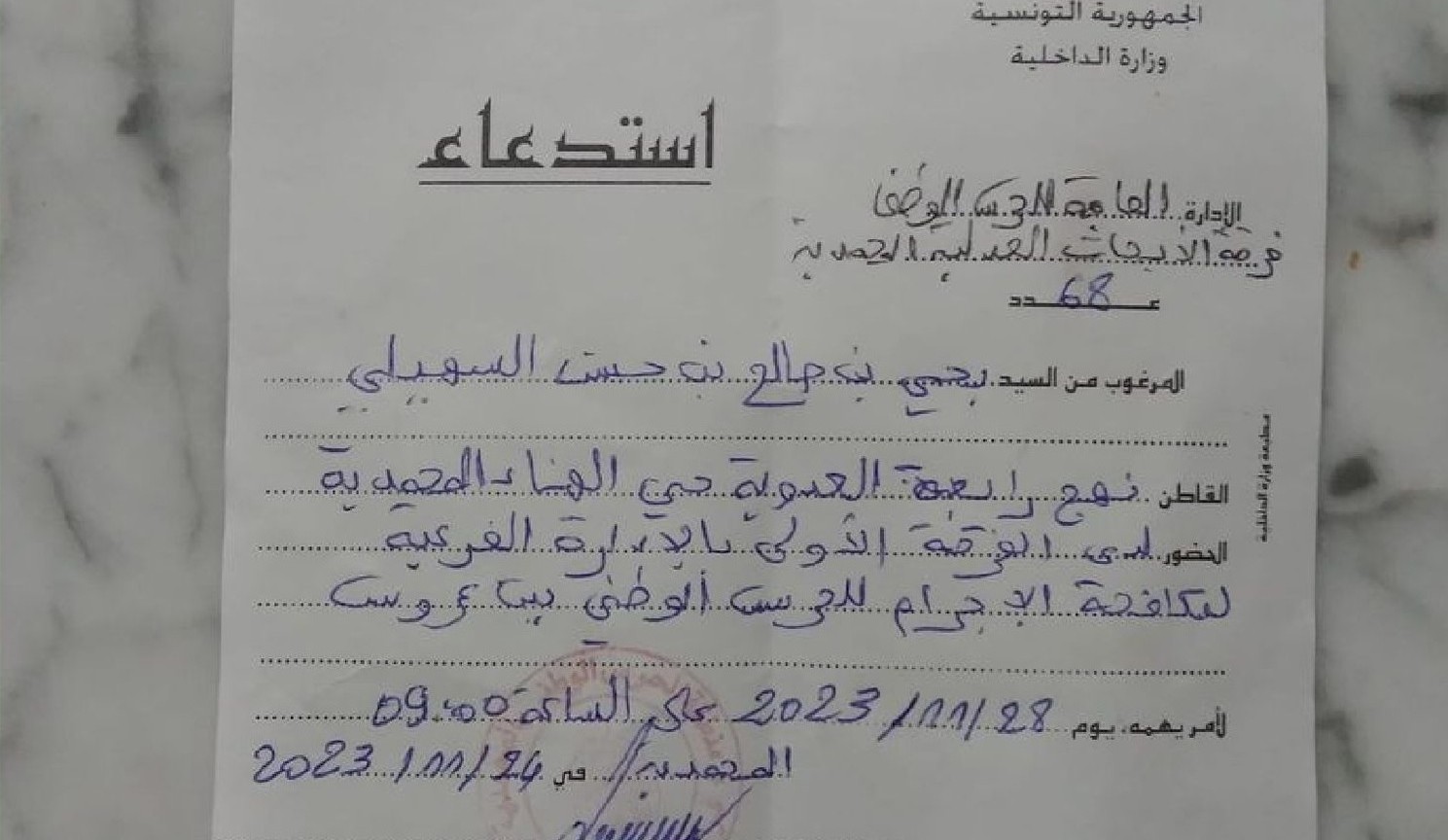 وقد تمت إحالته استناداً إلى أحكام المرسوم عدد 54، وتم الاستماع إليه وهو في حالة سراح.
